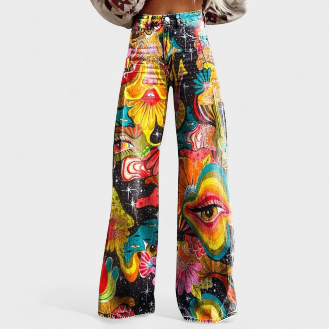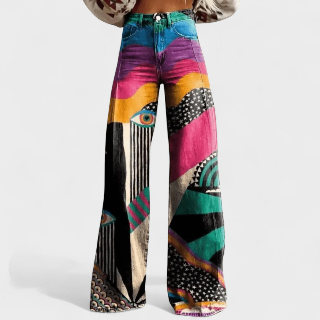 Postaw na odważny wygląd z Klaudyna. Te artystyczne spodnie to połączenie komfortu, wyrazistego wzoru i nowoczesnego designu — idealne na co dzień dla kobiet, które kochają się wyróżniać.